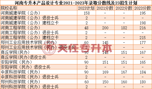 河南专升本产品设计专业2021年省控线143分、 2022年省控线146分、 2023年省控线164分 ;招生计划方面, 2021年招生人数24人,2 022年招生人数110人、 2023年招生人数614人 。