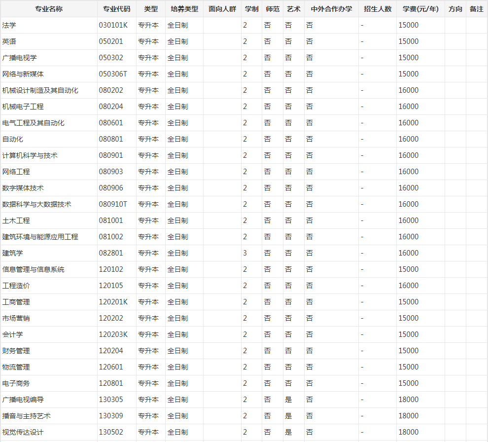 专升本各专业学费标准和我校四年制本科专业收费标准一致。
