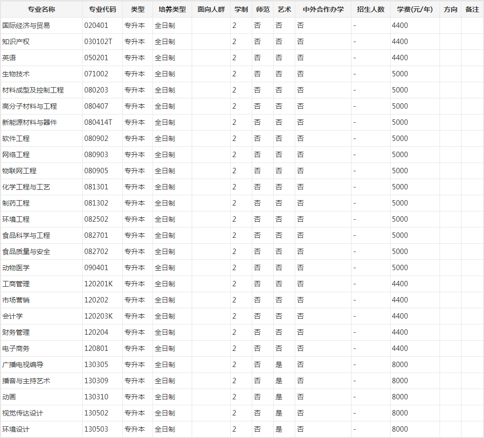 招生专业: 2024年学校共有汉语言文学、机械设计制造及其自动化、车辆工程、电气工程及其自动化、计算机科学与技术、土木工程、会计学等7个普通专升本专业招生。